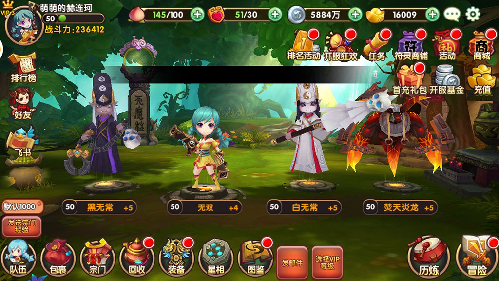淘气可爱的无双,玩家的任务就是选定一个角色让他跟随你一起体验仙侠世界,消灭小妖精,同时利用装备和战斗来提升主角的战斗力!